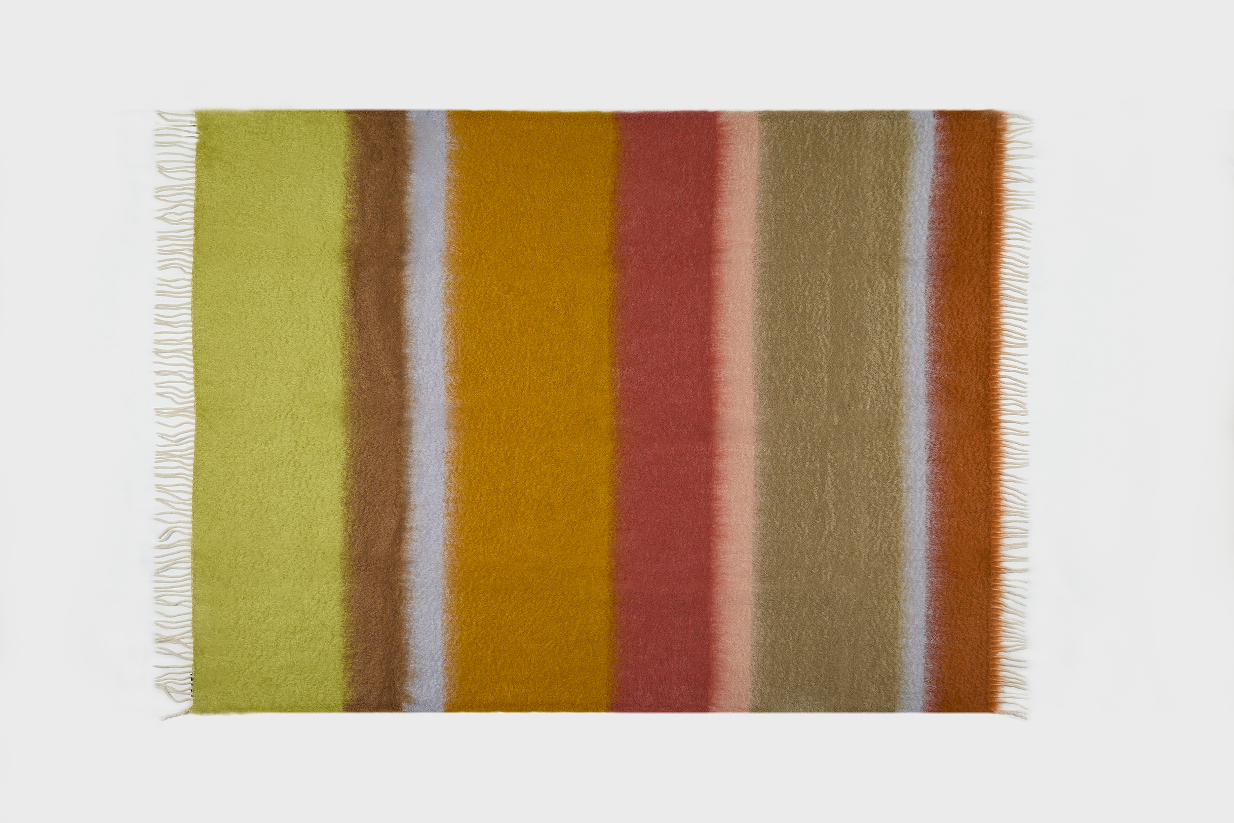 Matisse blanket with Mohair weft and Mohair-Wool warp and fringe.