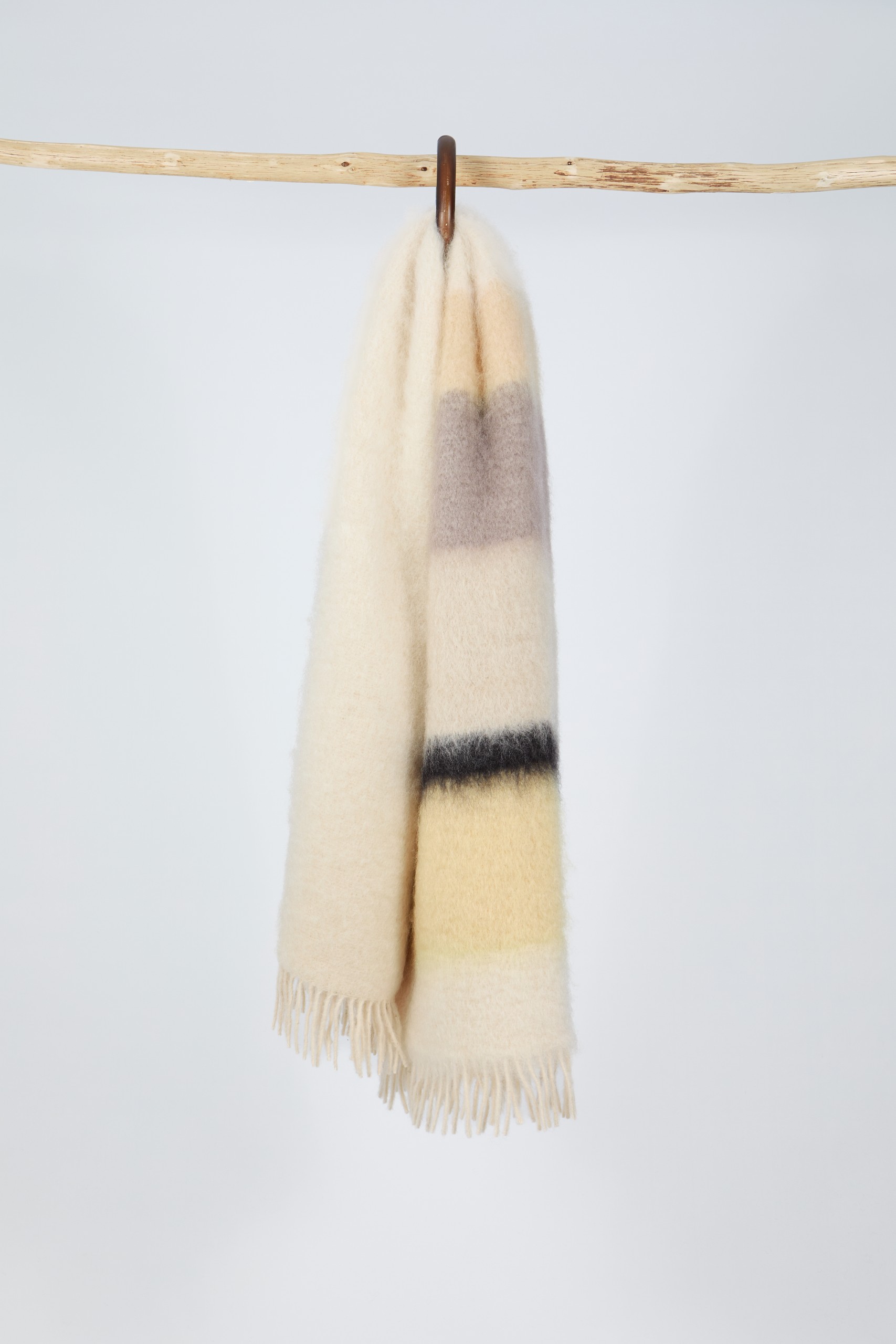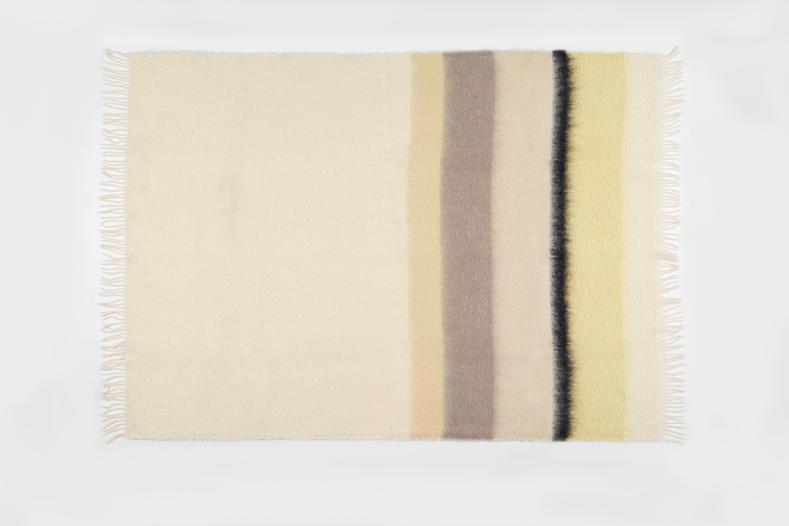 Base of the blanket in Beige and horizontal stripes in Brown, Gray and Yellow.