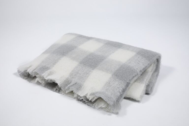 Manta Bebé Lana de cuadros en colores blanco y gris índigo.