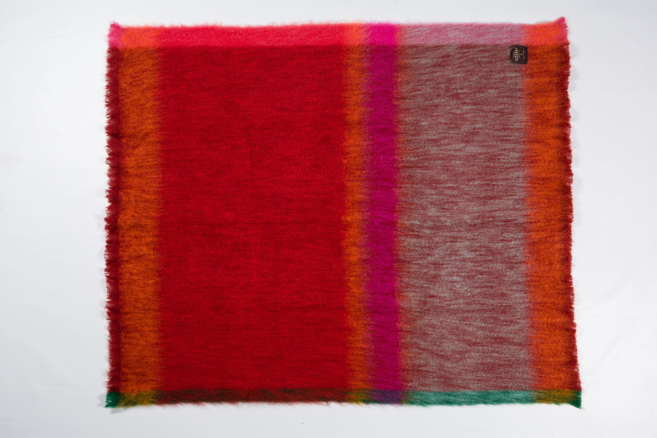 La Manta Rozco es una verdadera obra de arte artesanal que combina tonos rojizos, naranja, rosa fucsia y verde para crear un diseño único y elegante.